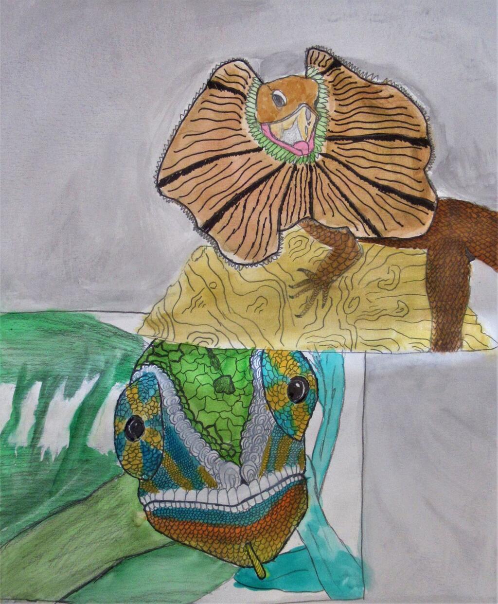 Our talented ECS art students drew cross-contour lizards and then water colored them! Beautiful work, Eagles!