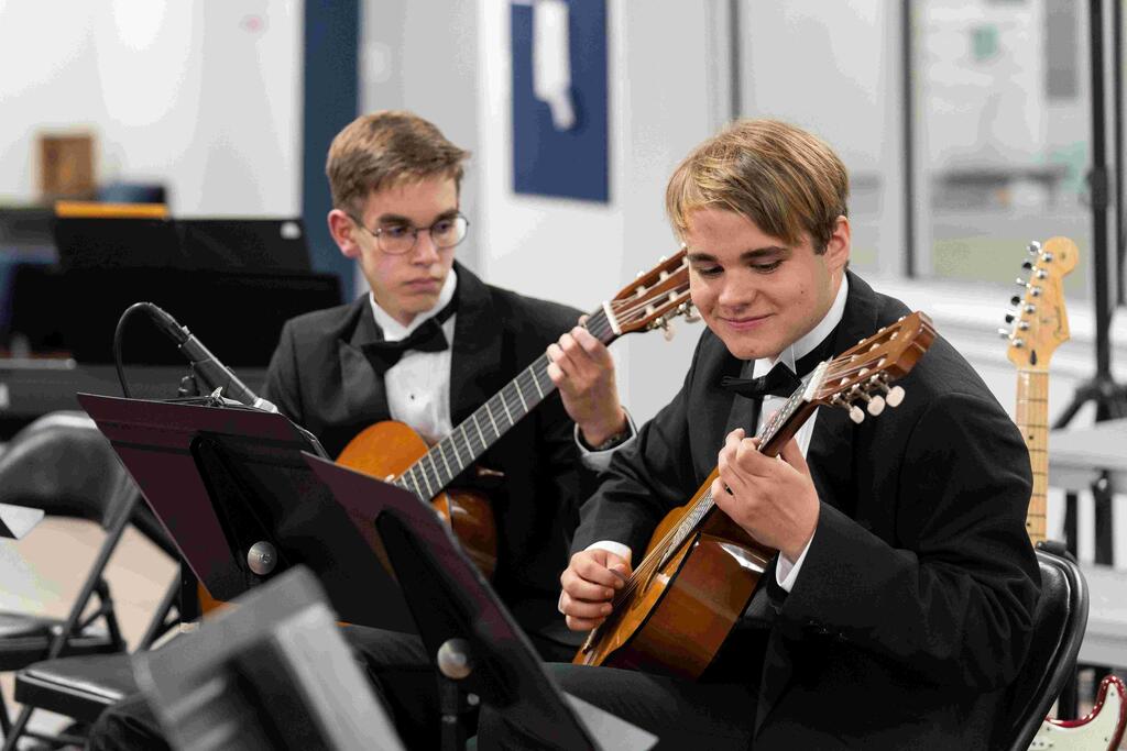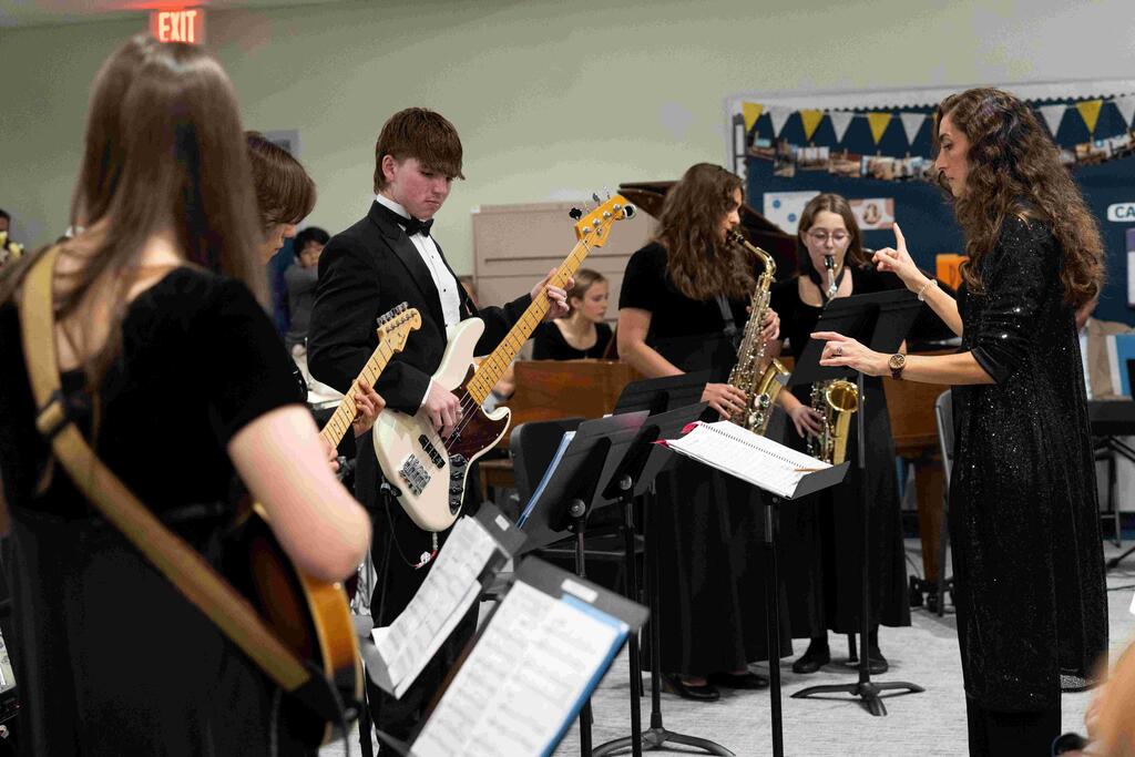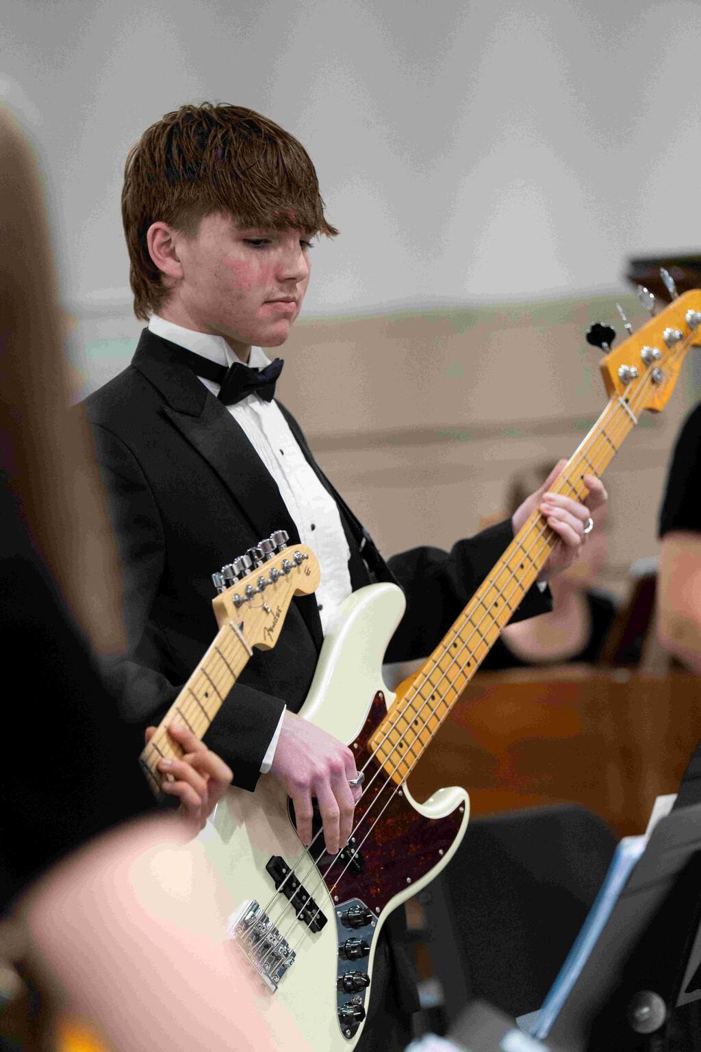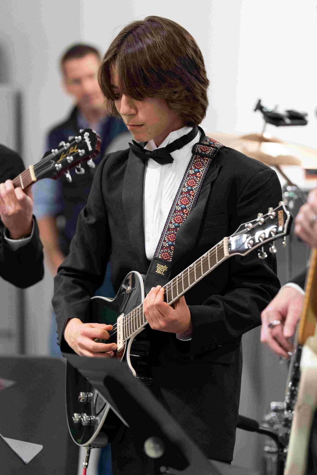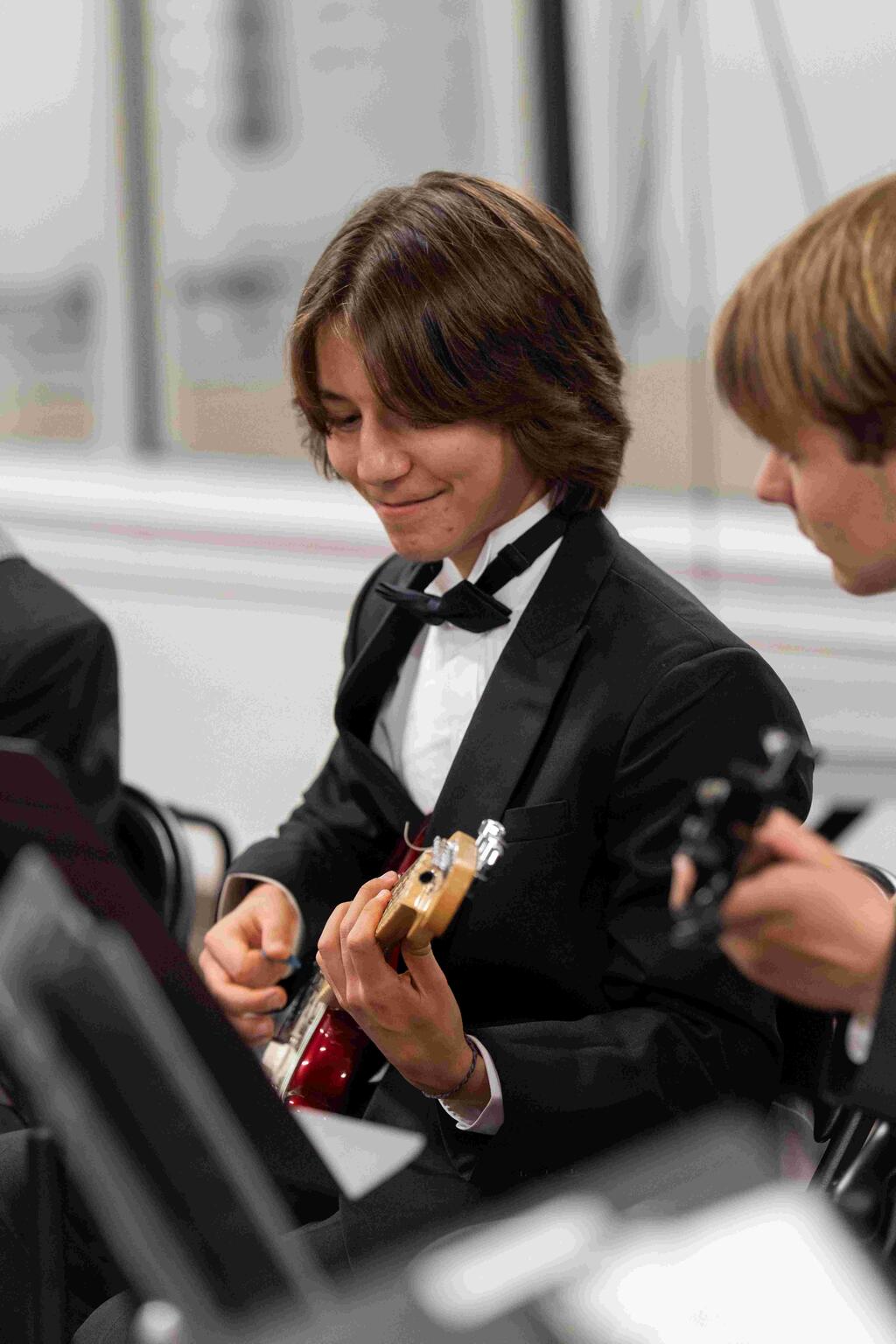 Once again, the Evergreen Christian School Fall Informance was a wonderful showcase of our gifted performing and visual art students. Upon entering the lobby, visitors were greeted with paintings, photographs, and prints from our Art and Photography students. Then, attendees were split into two groups to experience the musical stylings of our Guitar, Jazz Band, Choir, and Strings students, as well as a few selections from our Theater students. Each group got to enjoy a set from different ensembles in the Performing Arts Room and the Student Lounge. This informal, informative performance was a great way to showcase the hard work our students and teachers are putting into the Fine Arts Department. And by the way Math Department teachers, the Fine Arts Departments roll in tuxedos and formal gowns!