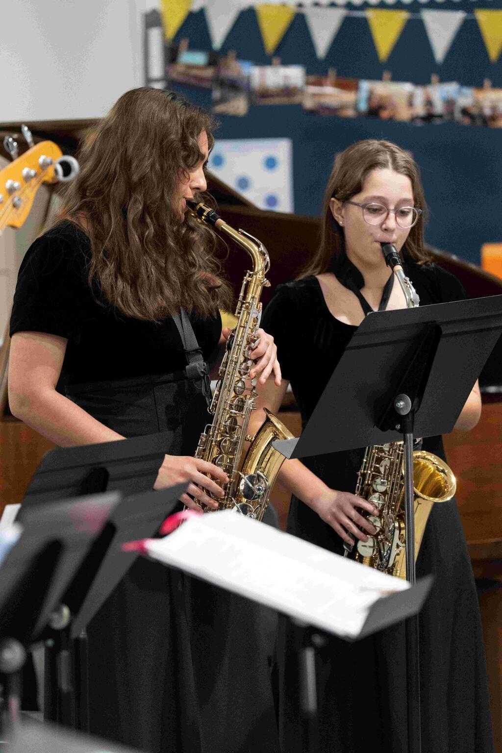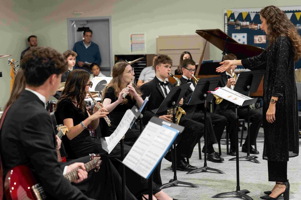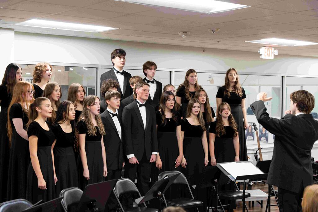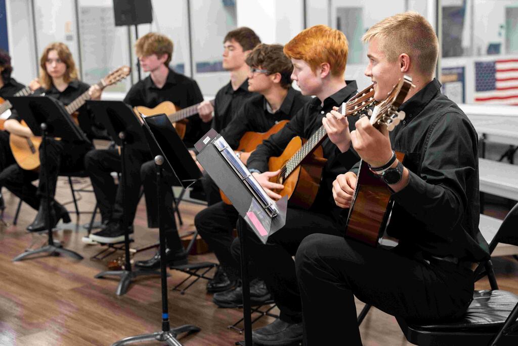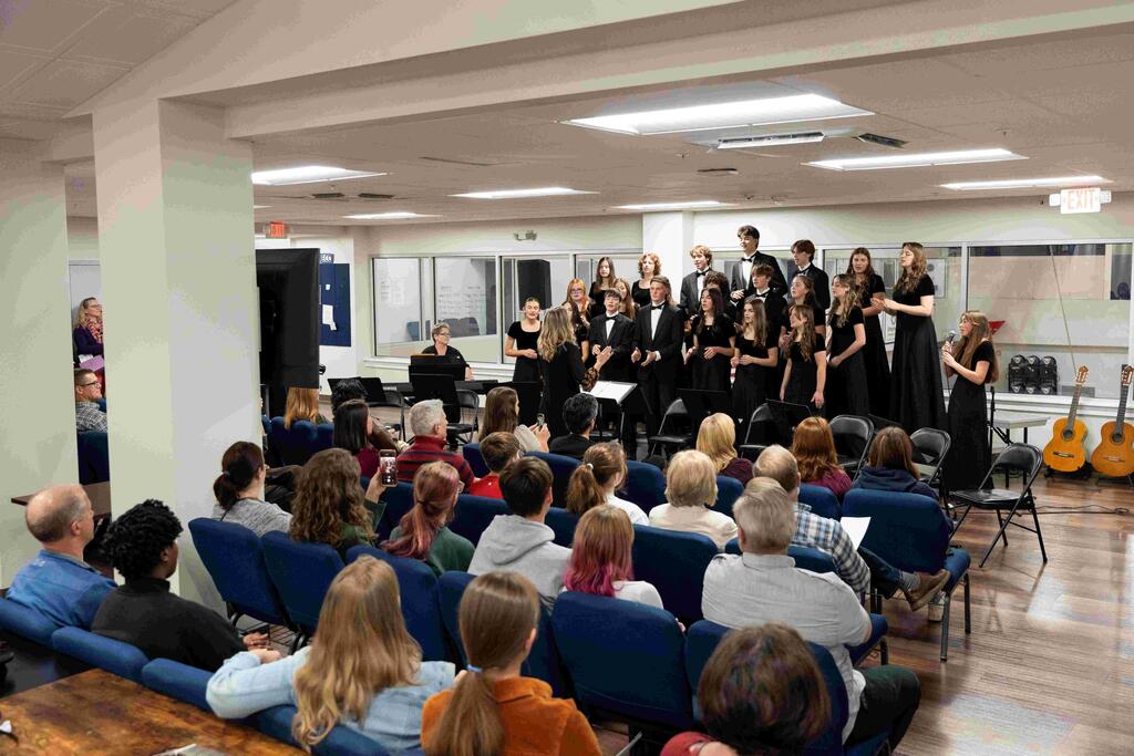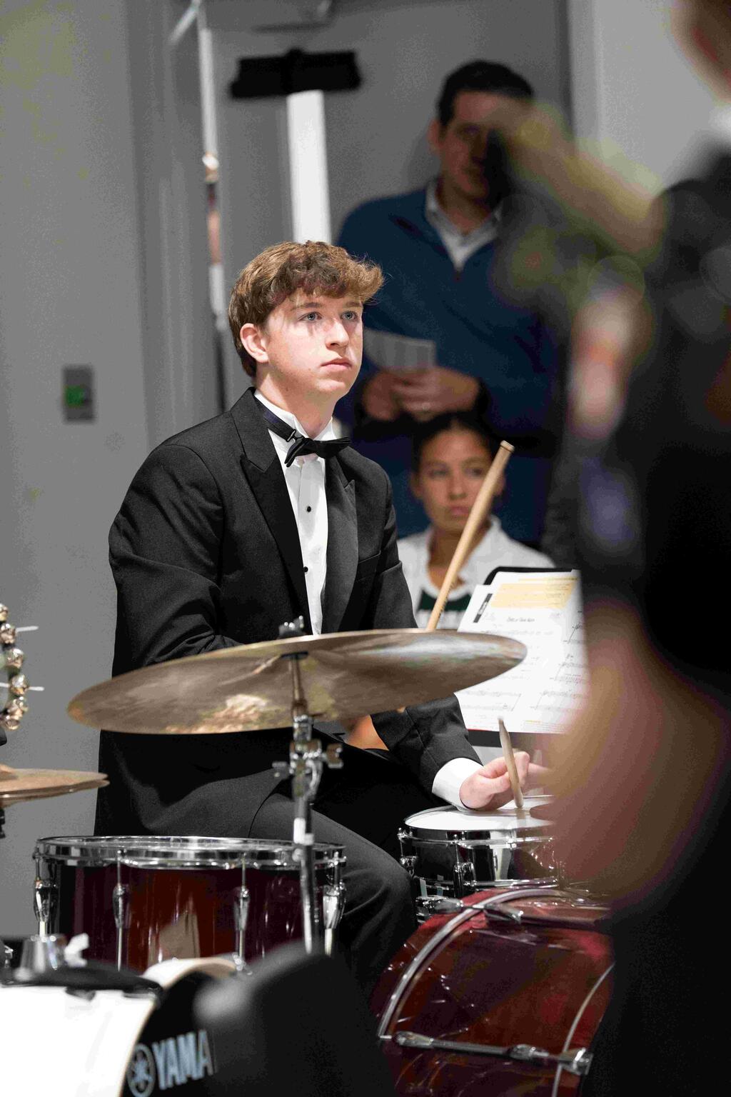 Once again, the Evergreen Christian School Fall Informance was a wonderful showcase of our gifted performing and visual art students. Upon entering the lobby, visitors were greeted with paintings, photographs, and prints from our Art and Photography students. Then, attendees were split into two groups to experience the musical stylings of our Guitar, Jazz Band, Choir, and Strings students, as well as a few selections from our Theater students. Each group got to enjoy a set from different ensembles in the Performing Arts Room and the Student Lounge. This informal, informative performance was a great way to showcase the hard work our students and teachers are putting into the Fine Arts Department. And by the way Math Department teachers, the Fine Arts Departments roll in tuxedos and formal gowns!