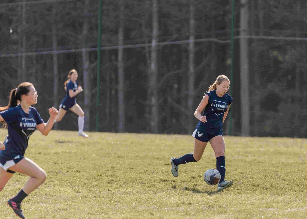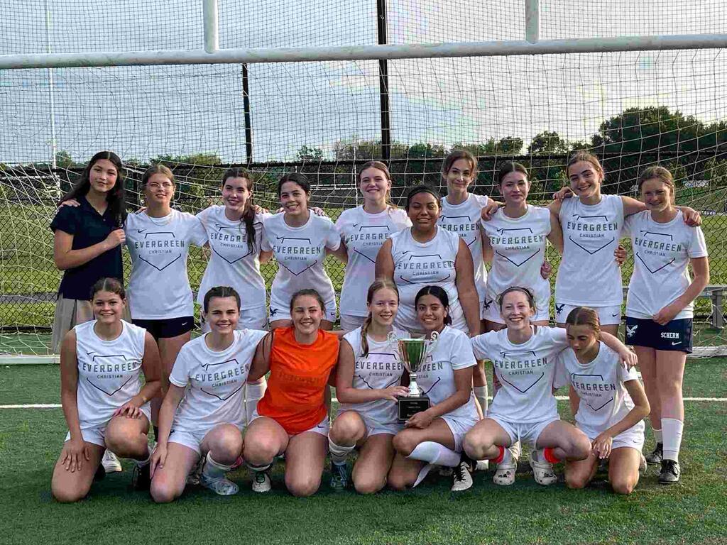 We couldn’t be prouder of the '23-'24 Evergreen Christian Varsity Girls Soccer team. They started off the new year with only nine girls interested in joining the first-year team, eventually growing to a full, 18-girl roster come early March. Our first-year coach (Coach B) had the girls ready for game 1 by March 20. They walked away from that game with a win and never looked back. They finished their season 7-1 in the NVIAC and took 2nd place in the tournament. We can’t wait to see what the future holds as ECS athletes continue to be a light for the Lord both on and off the field.