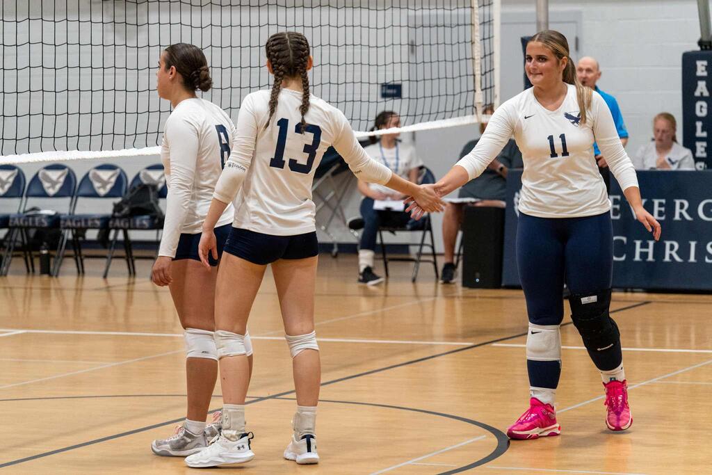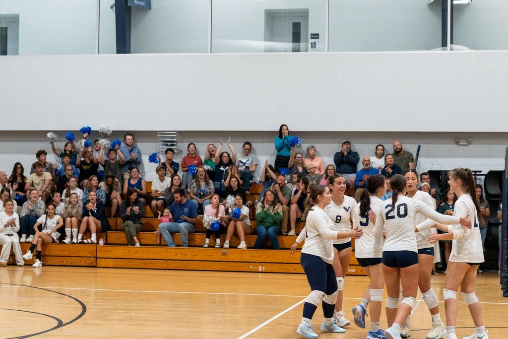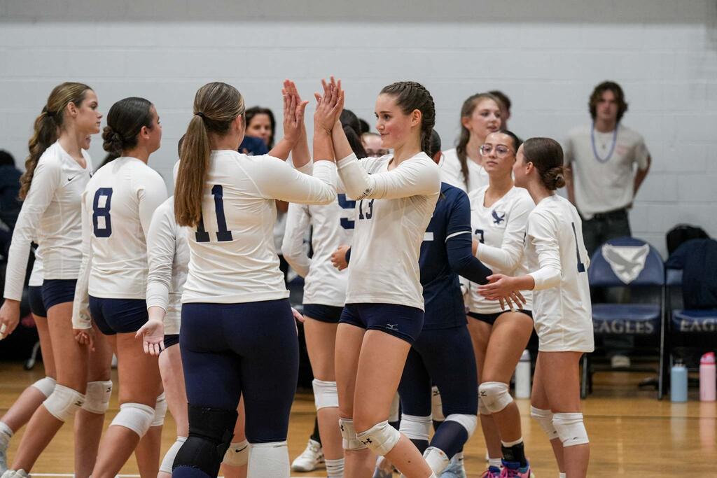 With three separate girls volleyball teams this year, there is no lack of excitement in the Eagle Center this Fall. Our girls varsity volleyball is off to a great start with an 8 and 0 record. They are currently holding down first place in the NVIAC with key wins coming against Virginia Academy and Highland. Our girls junior varsity volleyball team is also performing well and are currently in third place in the NVIAC. And then there is our hard fighting developmental squad affectionately known as JJV. They pulled off an exciting win against Cornerstone Christian Academy this past week and have shown significant improvement.