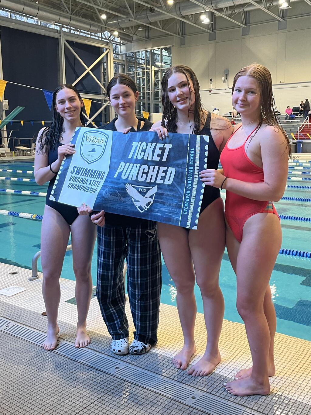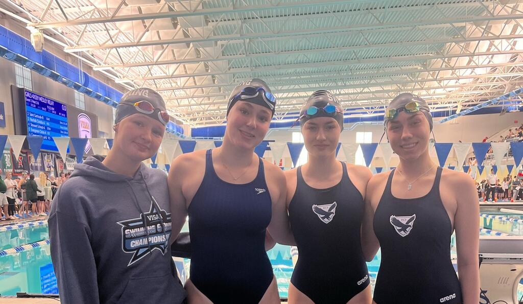 As our Swim Team approached the end of their season, our athletes made quite a few notable accomplishments: Abby H. placed first in 100-yard breaststroke at the VISAA Division II Swim Invitational. On 1/24/26, she was named female swimmer of the meet at the VISAA Junior Varsity Invitational, taking first place in all three of her events and breaking the meet record in the 50 free with a time of 25.74. Additionally, Sullivan H. and Abby H. qualified for VISAA States in individual events and our girls relay team (Lucy B., Abby H., Sullivan H., and Dakota H.) qualified for VISAA States in the 200-medley relay and the 400-freestyle relay. The team headed to the state competition in Richmond over Valentine’s Day weekend with the 400 freestyle relay team placing 20th overall, and Abby H. placing 10th in the individual medley finals and 16th in the breaststroke finals. We are proud of all our Eagle swimmers and also want to recognize our boys who set new team records, Nathaniel T. in 200 individual medley, 50 freestyle, 500 freestyle, 100 backstroke, and 100 breaststroke, and Caleb T. in 100 freestyle and 100 butterfly, plus our boys relay records, 200 medley relay (Nathaniel T., Joshua O., Caleb T., and Lorenzo H.), 200 free relay (Caleb T., Lorenzo H., Joshua O., and Nathaniel T.), and 400 free relay (Caleb T., Lorenzo H., Joshua O., and Parker B.). Congratulations to Coach Matthews on a very successful season!