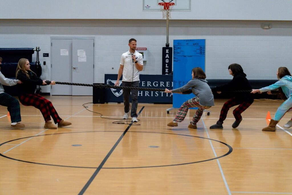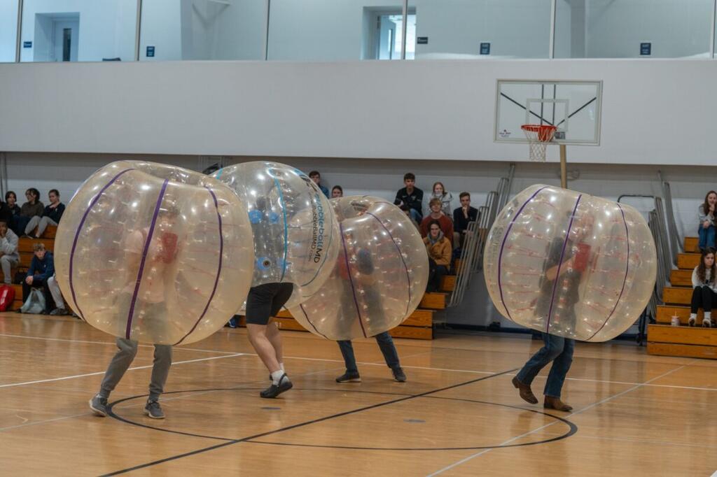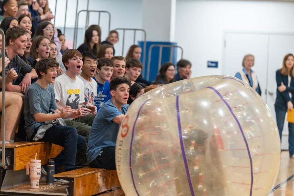 Students returned from Christmas break for a week filled with fun dress-up days and playful competitions. In what has become an annual New Years tradition at ECS, Spirit Week kicked off on January 2 with Pajama Day. In addition to Twin Day and School Spirit Day, students had fun dressing in the clothing of the 50’s, 60’s, 70’s, and 80’s on Decades Day. Each day’s schedule was adjusted to provide an hour for student competitions, which included tug of war, dodgeball, ultimate football. The highlight of the week was Bubble Ball Soccer, which is likely to be a regular activity for years to come. Spirit Week was scheduled to conclude on Saturday with the Evergreen Frost Fling dance, which was postponed due to snow.