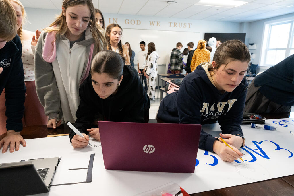 Now that we officially have alumni, ECS was able to host its first official Homecoming Week. Last year’s graduates were invited back on campus for an alumni chapel and breakfast, capped off by a Homecoming Game double header with our girls and boys varsity basketball teams. While three snow days cut the week short, current students were able to make it into school for a few spirit days, friendly class competitions, and a formal homecoming dance.
