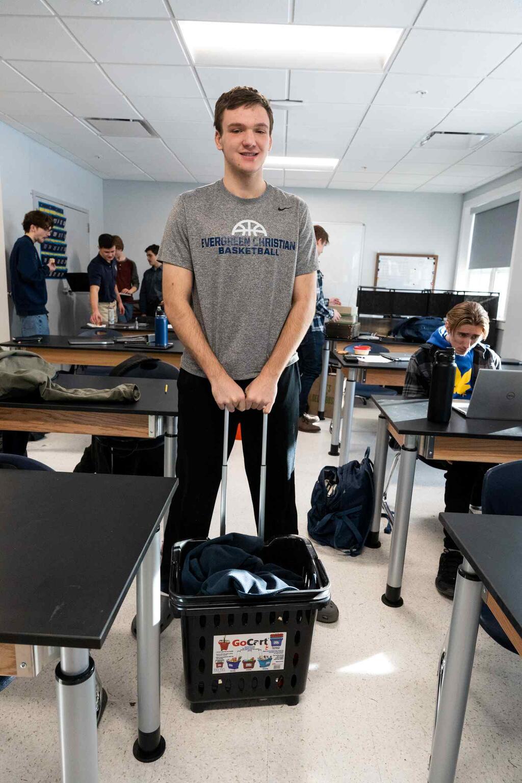 Each grade was tasked with creating a banner to display at the Homecoming game. After a great deal of collaboration, our students came up with some creative displays. In the end, the Sophomore class was awarded the prize for the best banner, winning a free homework pass for each 10th grader. Our Evergreen Christian Council planned the spirit days, featuring Pajama Day, ECS Spirit Day, and Through the Ages Day. Anything but a Backpack Day was the hit of the week, with students bringing creative alternatives for carrying books and supplies to school. One student brought a dishwasher in place of a backpack, another a Christmas tree, and one went so far as to bring her younger brother to carry her books!