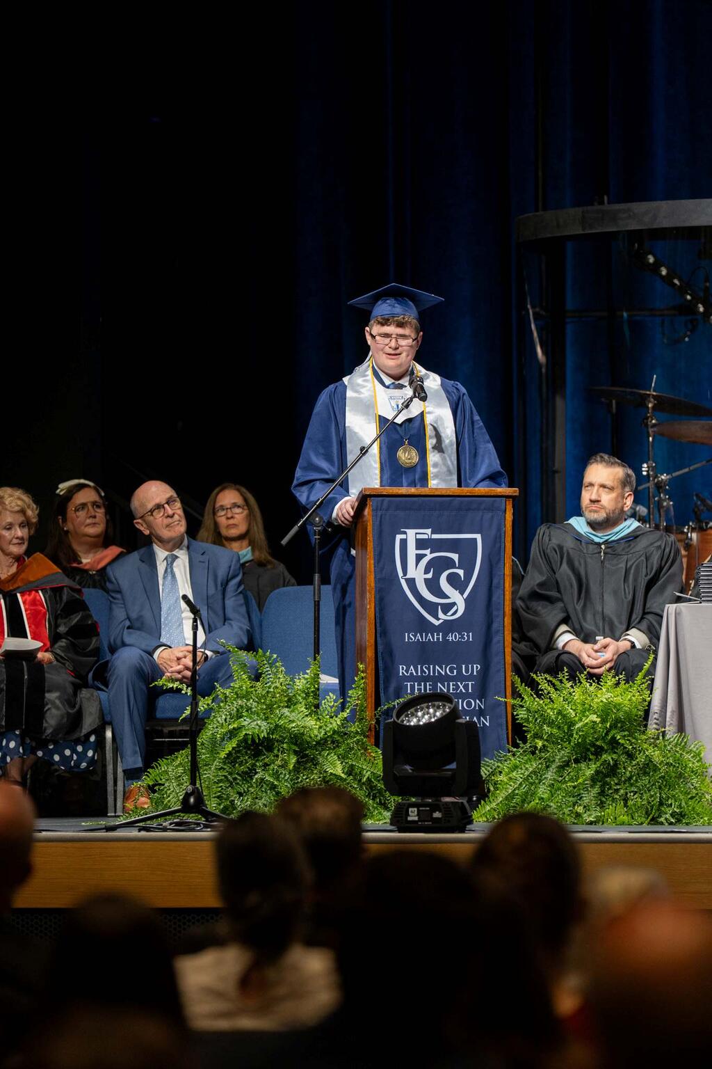 With the end of another school year comes the celebration of our second graduating class. This year, 40 amazing students walked across the stage to receive their diplomas, turning their tassels and officially becoming high school graduates. We have had the honor and privilege of seeing these young women and men grow up over the past few years, and we could not be prouder of what they have become. All 40 of them have exceeded our expectations, and each one of them has truly helped us build this school, establish a culture, and set a standard of excellence. Both they and their families are leaving a lasting legacy that will be a blessing for future generations of Eagles. While they will be missed greatly, we send these brothers and sisters in Christ out into this world confident that they are securely in the hands of God.