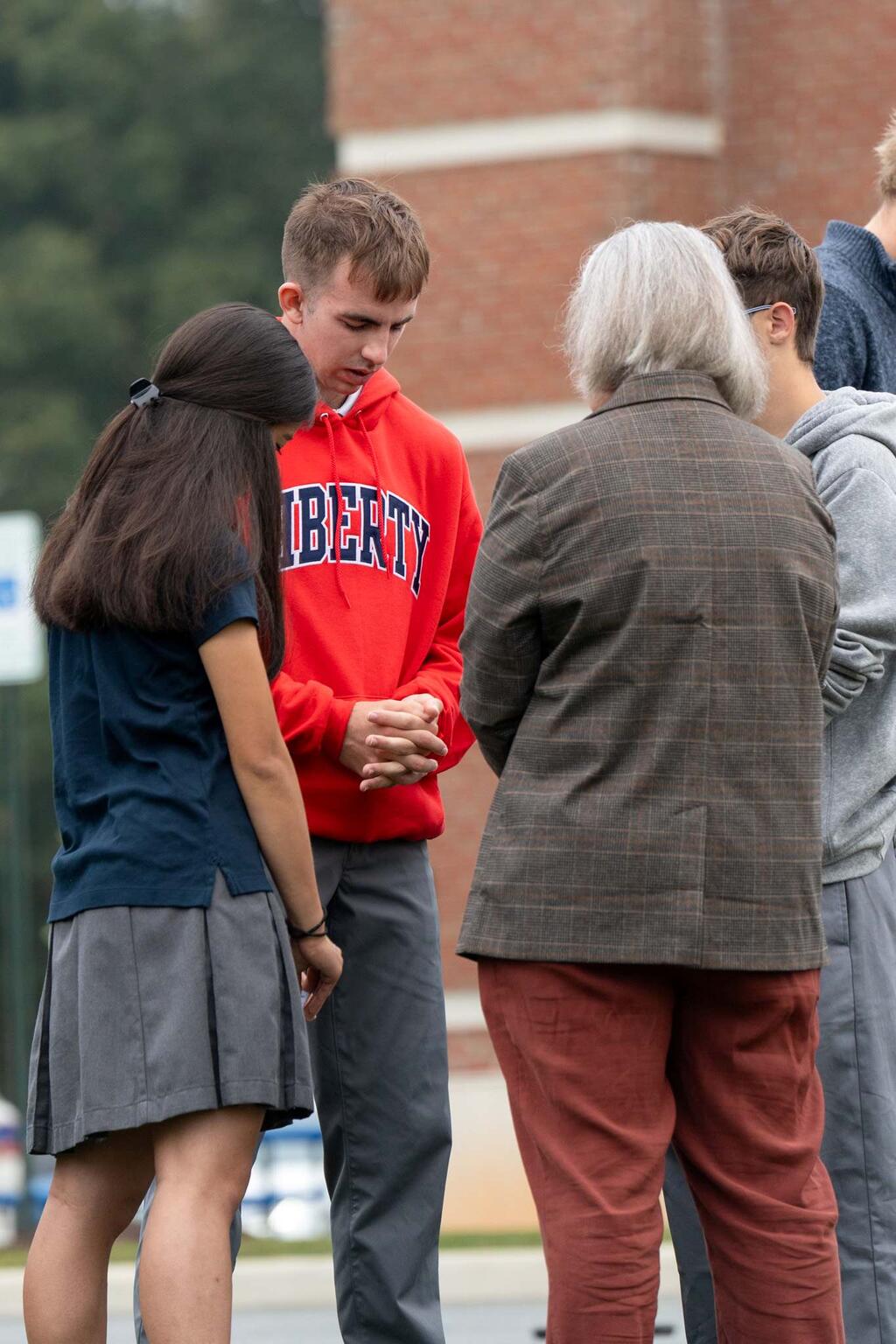 This is the 35th year for See You at the Pole, a student-initiated and student-led event that started in Burleson, Texas, in1990. It was also the fifth year of SYATP at ECS. SYATP brings students together to intercede for their leaders, schools, and families, asking God to bring moral and spiritual awakening to their campuses and countries—and it couldn’t have come at a more needed time given all that is happening in our nation. As the name indicates, students gathered at school flagpoles or other community locations to pray, ensuring that all around the world in every time zone, for 24 hours, students were praying for their school, friends, families, churches, and communities. This year’s theme was “AWE”, taken from Habakkuk 3:2. Two of our ECC leaders, seniors Brodie F. and Jaden C., led in prayer and the reading of Scripture. Another senior, Andrew H., led in songs of worship. Before heading back into the school, we split up into small groups and spent time in intentional prayer for one another. We are so thankful to serve a God who hears our prayers—big and small.